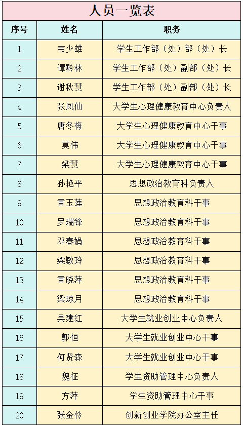 人员一览表