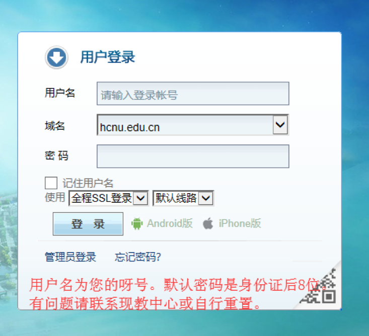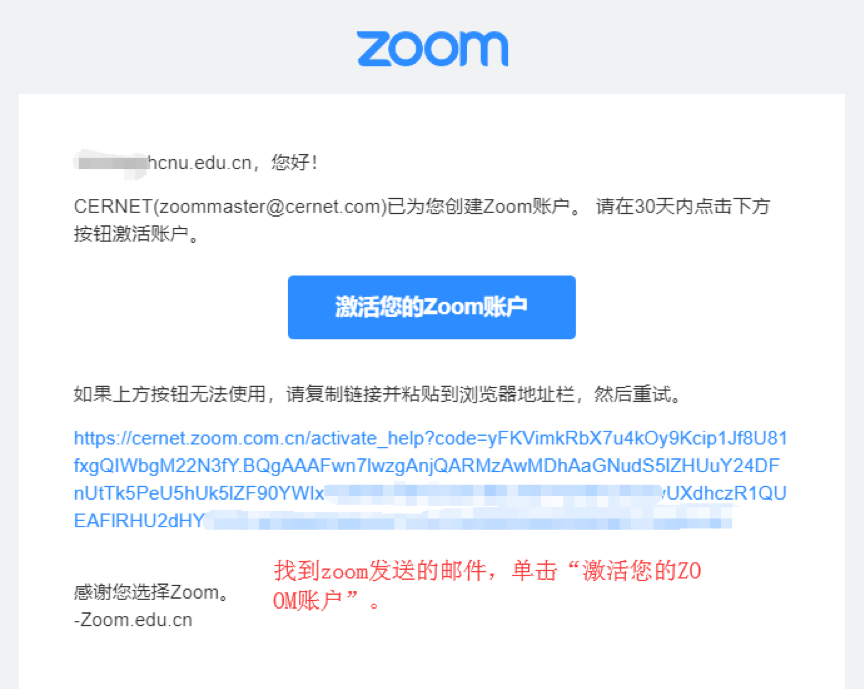 2.验证:打开河池学院校园邮箱(https://mail.hcnu.edu.cn),输入账号和密码(账号为您的工号,默认密码为身份证后8位)并登陆。第一次登陆可能需要您绑定手机。找到ZOOM发送的邮件,单击“激活您的账户”。