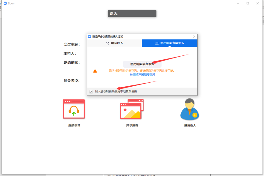 4.安装并启动会议:在网页或手机上下载安装ZOOM软件后,登录后就可以启动会议了。通过下方的“邀请”按钮,可以将参会地址发给参会人员。通过“共享屏幕”能实时的分享您的屏幕内容。通过“录制”您可以将会议或课程内容录制下来并在会(课)后分享给相关人。