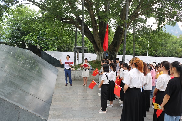 6月28日上午,我校在宜州区浙大西迁纪念广场举办了第五期党史学习专题辅导员沙龙。本次活动由马克思主义学院和商学院联合承办,10余名辅导员、学工队伍同志及部分学生代表参加沙龙学习。