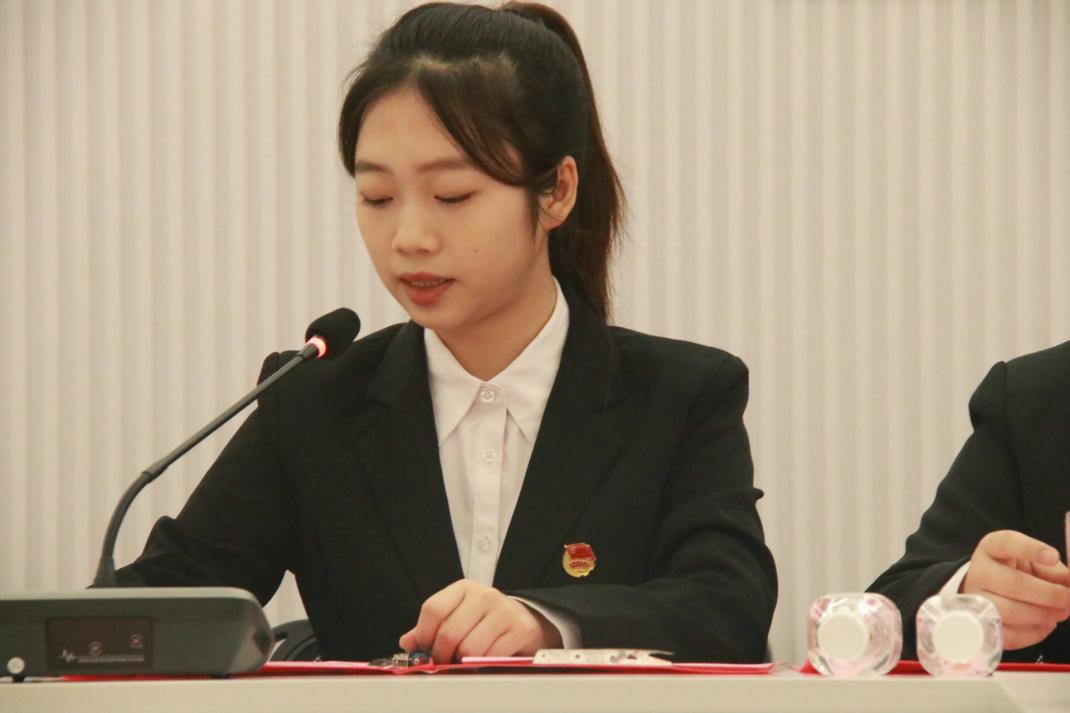 我校党员代表韦琳琳表示,在党的坚强领导下,中国共产主义青年团不忘初心、牢记使命。走在青年前列,组织引导一代又一代有志青年坚定信念、紧跟党走,为争取民族独立、人民解放和实现国家富强、人民幸福而贡献出自己的力量,谱写中华民族伟大复兴的青春乐章。