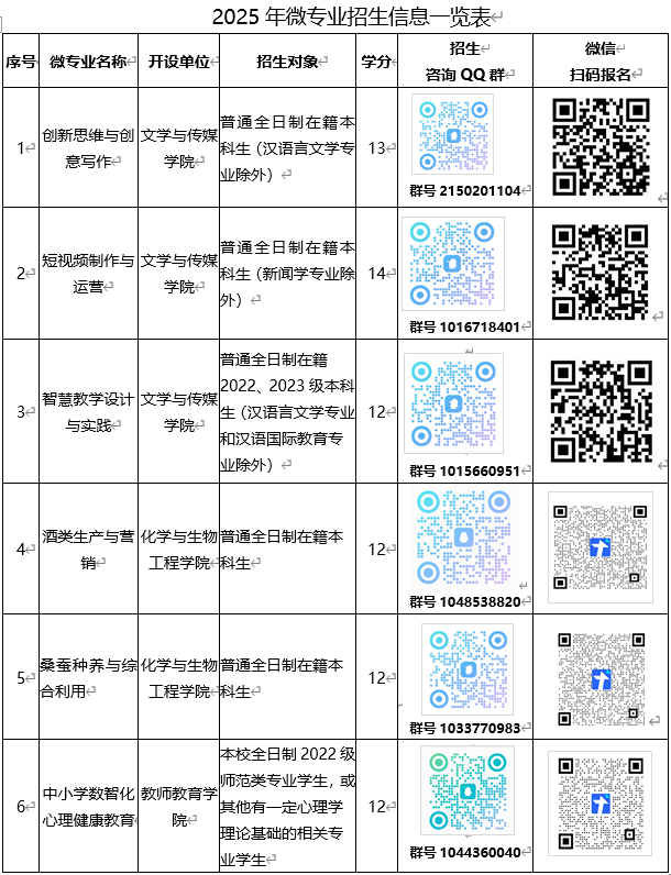 为发挥办学优势与专业特色,加速“四新”交叉融合建设,深入推进我校人才培养模式改革,主动适应新技术、新产业、新业态、新模式对高校人才培养的时代要求,满足学生多元化、个性化学习需求,提升应用型人才培养质量,增强职业竞争力,经研究决定开展2025年微专业报名工作。现将具体事项通知如下: