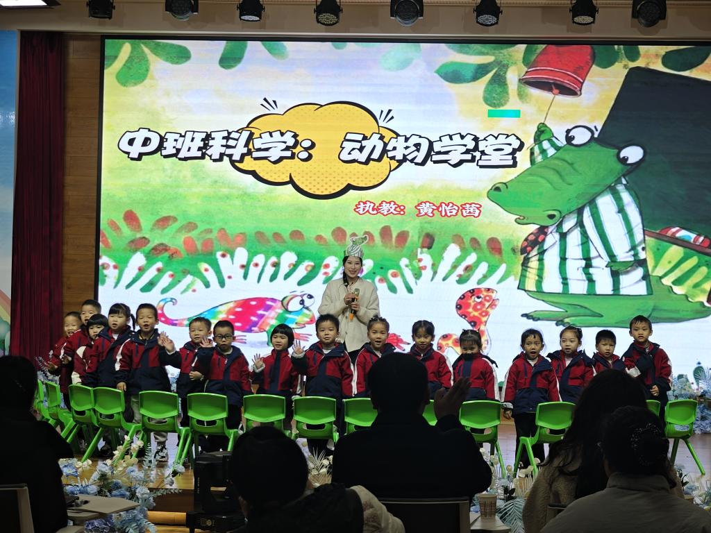 汇报课环节,三位实习生依次登台,以饱满的热情和专业的素养展现教学风采。大班社会课《我是勇气小卫士》中,覃文思同学结合生活实例,引导幼儿直面恐惧、勇于尝试,在潜移默化中培养社交勇气与责任意识。小班律动活动《小鸡出壳》中,寇敏同学借助生动的情境创设,引导幼儿模仿小鸡出壳的各种动作,课堂上满是欢声笑语,孩子们在律动中体验音乐的乐趣。黄怡茜同学带来的中班科学课《动物学堂》,以“动物学堂”为趣味主题,让幼儿在动手操作中轻松掌握前后方位概念,教学环节紧凑有序,充分调动了幼儿的探索积极性。三堂课设计巧妙、各有亮点,展现了实习生扎实的专业基础与灵活的教学能力。