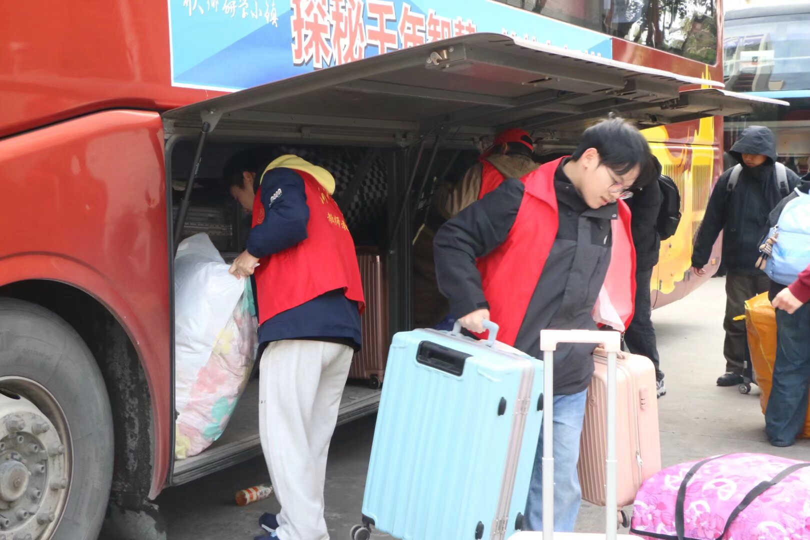 为确保返校流程高效有序,学院前期全面统计实习生返校时间、交通方式等关键信息,制定了详细的工作方案,明确各环节职责与分工。返校当日,志愿者提前到达指定岗位,热情等候并积极协助学生搬运行李,提供必要的引导与服务。