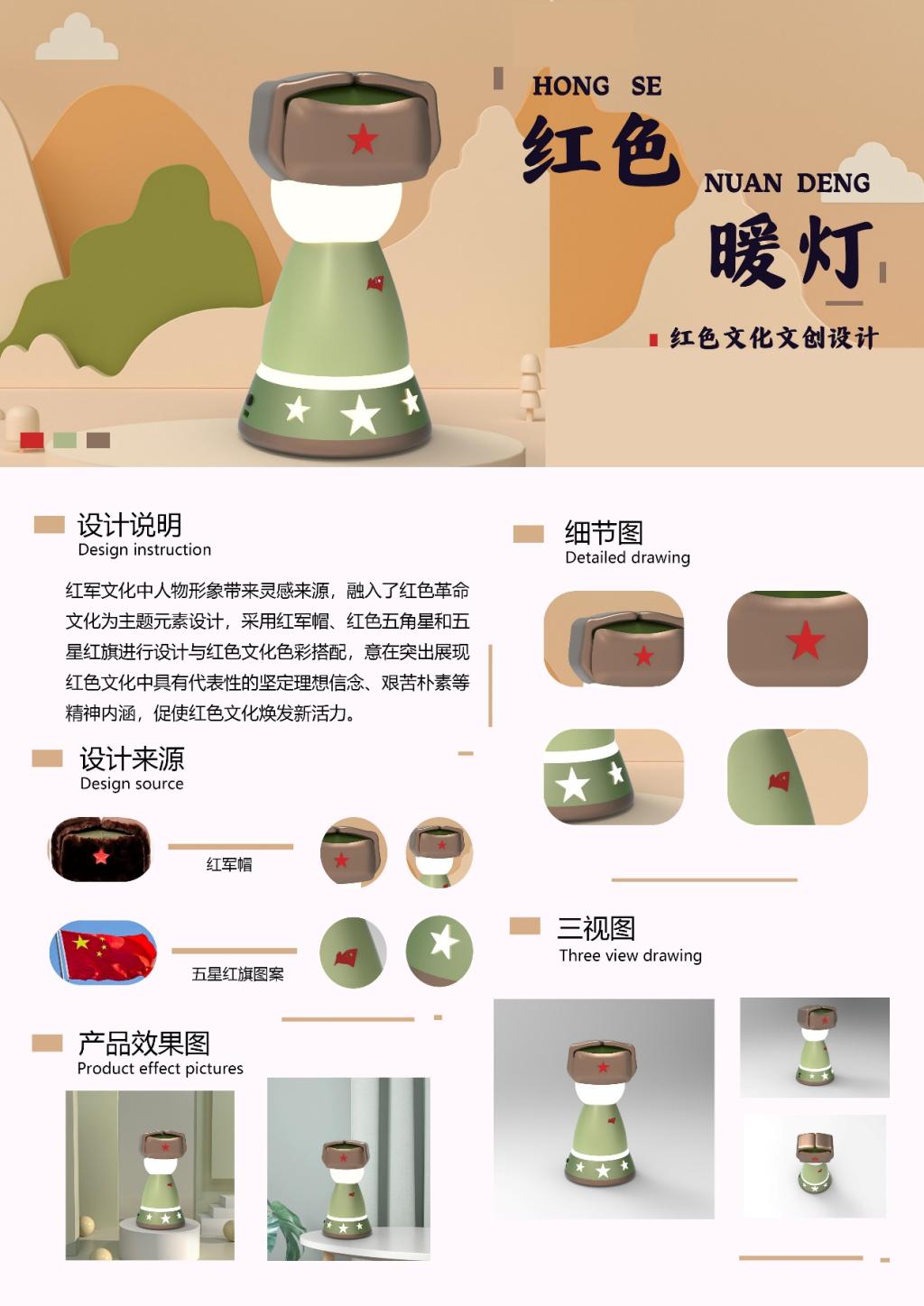 在课程思政建设大背景下,注重产品设计专业应用型人才培养,在文化创意设计课程中提炼红色文化的核心价值观和理念,引导学生树立正确的价值观和职业道德。通过设计实践,增强学生的文化自信和爱国情怀,提高设计作品的内涵和品质,提升学生的文化素养和职业能力,培养出具备社会主义核心价值观的产品设计专业人才。