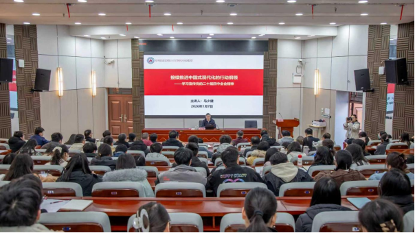 为推动党的二十届四中全会精神在基层单位落地生根、入脑入心,引导广大师生准确把握全会核心要义与实践要求,1月7日,学校校长马少健以“接续推进中国式现代化的行动纲领”为主题作党的二十届四中全会精神专题宣讲报告。宣讲报告在格致楼负101报告厅举行,数理学院、大数据与计算机学院全体师生党员及教师、学生代表参加,报告会由数理学院党委书记罗日才主持。