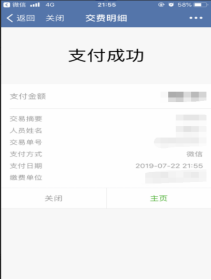 1)支付完成后,显示如下图所示的缴费成功页面,如果看到待支付金额减少说明交费成功。缴费成功后,请自行截图保存。