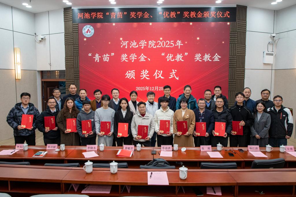 12月25日,我校在格致楼-101多媒体教室举行2025年“青苗”奖学金、“优教”奖教金颁奖仪式。学校党委常委、副校长唐毓首,合肥工业大学党委常委、副校长季益洪,合肥工业大学离退休工作部部长郑召丽,“青苗”奖学金与“优教”奖教金的创立者、合肥工业大学驻我校银龄教师张利教授,学校相关职能部门负责人,以及获奖师生代表、师生代表出席仪式。