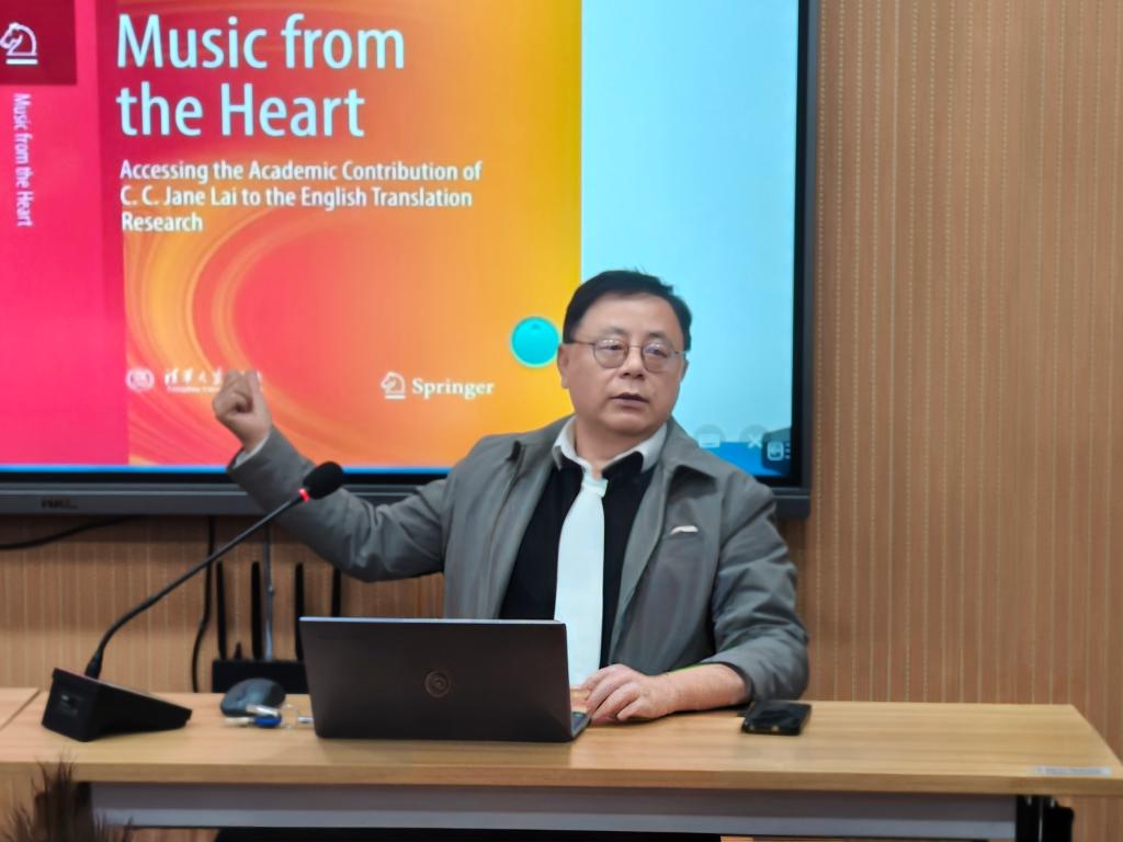 12月24日,广西民族大学张旭教授应邀我校外国语学院、国际教育学院师生带来题为“AI赋能民族文化翻译与传播”的专题学术讲座,内容涵盖“AI技术赋能地方翻译能力建设”“AI技能提升地方文化国际传播效能”“AI助力民族文化融入国家对外话语体系”三大核心板块,讲座由外国语学院院长韦丽秋主持。