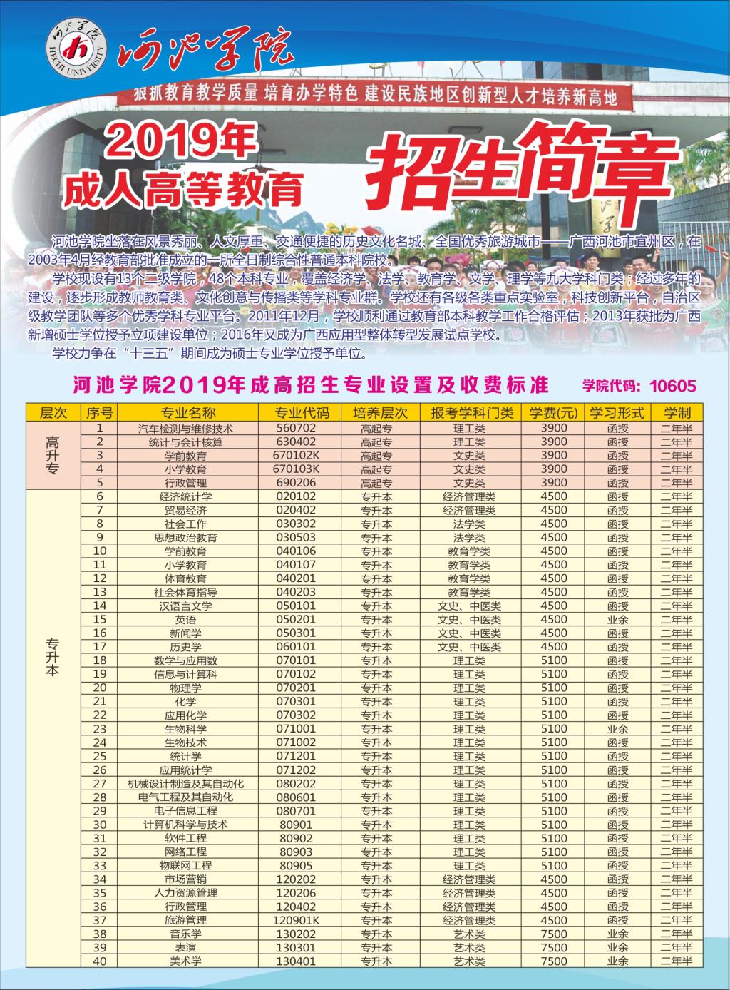 河池学院2019年成人高等教育招生简章