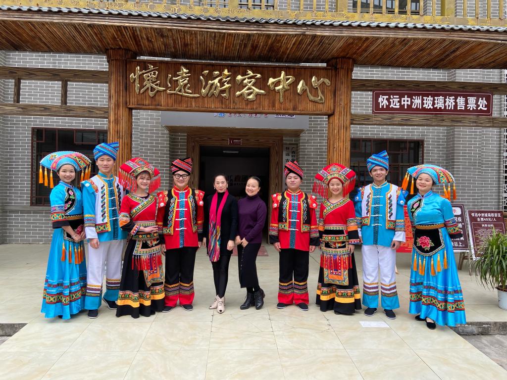 在学习中,有部分学生想学却苦于不会说桂柳话,唐老师便耐心地教他们每一个字的音韵、平仄与方言表达方式。因文化和语言的差异,学生们接受程度深浅不一,她还以大型彩调歌舞剧《刘三姐》各唱段为例讲解、分析,帮助学生理解每一个角色,通过引导式教学让学生更好地接受。教学中,她还穿插介绍地方民族节庆、特色美食、民族服饰、传统习俗等丰富的内容,学生由原来单纯的被动学习而转入主动的个体体验。她表示,希望多组织学生参加实地实景的实践教学活动,让学生真正走近刘三姐歌谣及其文化。