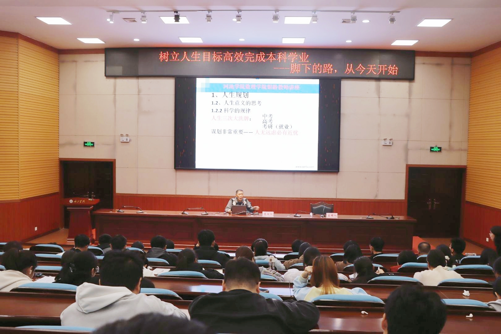 3月12日,我校数理学院在东区弘毅楼1区205报告厅开展题为“树立人生目标 高效完成本科学业——脚下的路,从今天开始”的学业规划专题辅导讲座。讲座由我校银龄教师苏润洲教授主讲,学院2024级新生到场聆听,讲座由物理系主任隆寅老师主持。