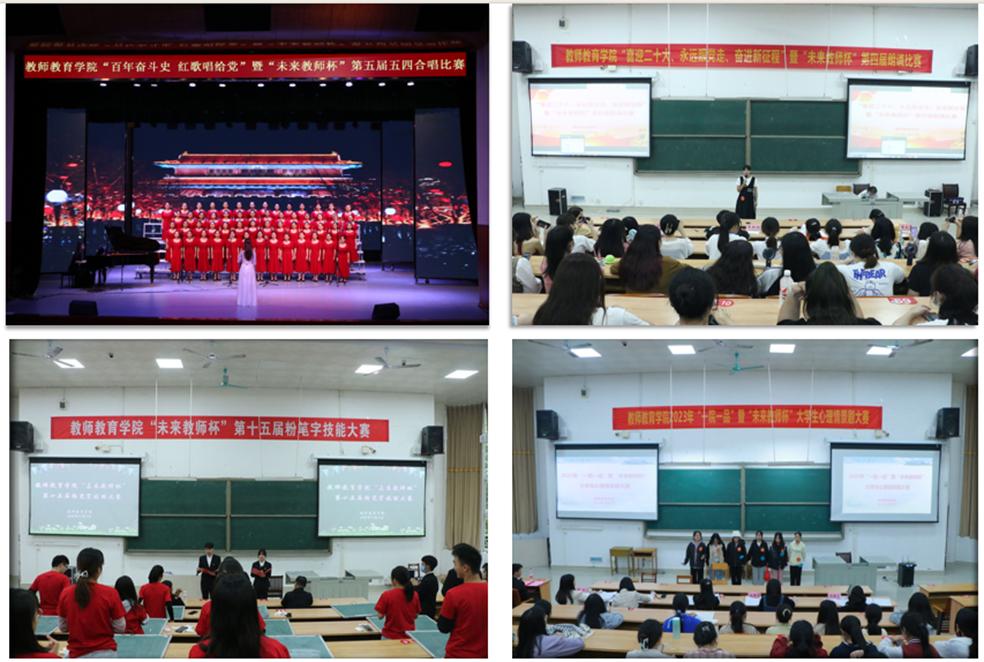 聚焦社会发展需求,回应时代呼唤,教学做合一,学院始终秉承“学生发展中心”理念,积极构建常规教育和专题教育有机融合的人才培养体系,切实提升师范生综合素质与实践能力。开设教师基本技能训练、模拟试讲、教育见习实习研习等丰富多样的教师教育集中实践课程,努力丰富完善实践教学工作载体,依托教师教育实训中心打造高水平的学生专业实践平台构建四年一贯、内外融通、符合教师成长规律、富有师范特色的实践教学模式。通过创设教师教学技能“未来教师杯”、“每日一练”等学科专业品牌活动,以考促练、以赛促练,课内点拨与课外自主练习相结合,夯实师范生的教师基本技能。学院获批自治区级大学生校外实践基地1个,自治区级教师教育实践基地1个。近五年,学生获广西师范生技能大赛一等奖3名,二等奖4名,三等奖6名,名列本校各师范院系前茅。